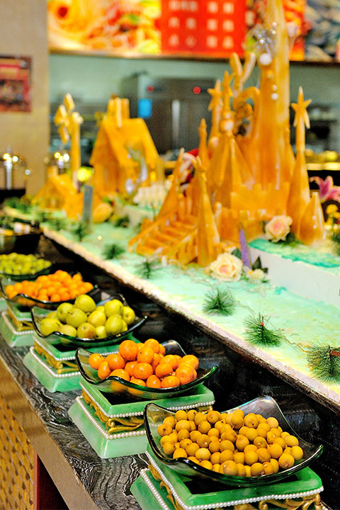 酒店擁有風(fēng)格迥異的各式餐廳:“世紀(jì)廳”大型宴會廳豪華典雅,是舉辦各類活動及婚宴、壽宴、滿月宴的首選; 32間中餐包廂富麗堂皇,是您宴請貴賓的理想去處,您可以品嘗到原汁原味的各式海鮮;大堂吧供應(yīng)價(jià)廉物美的各式飲品、茶點(diǎn),是賓客休閑會友的好去處。